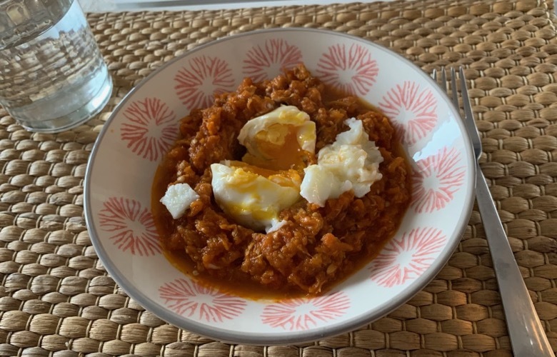 La fuente original de esta receta esta aquí. Servir con un huevo escalfado y con atún.