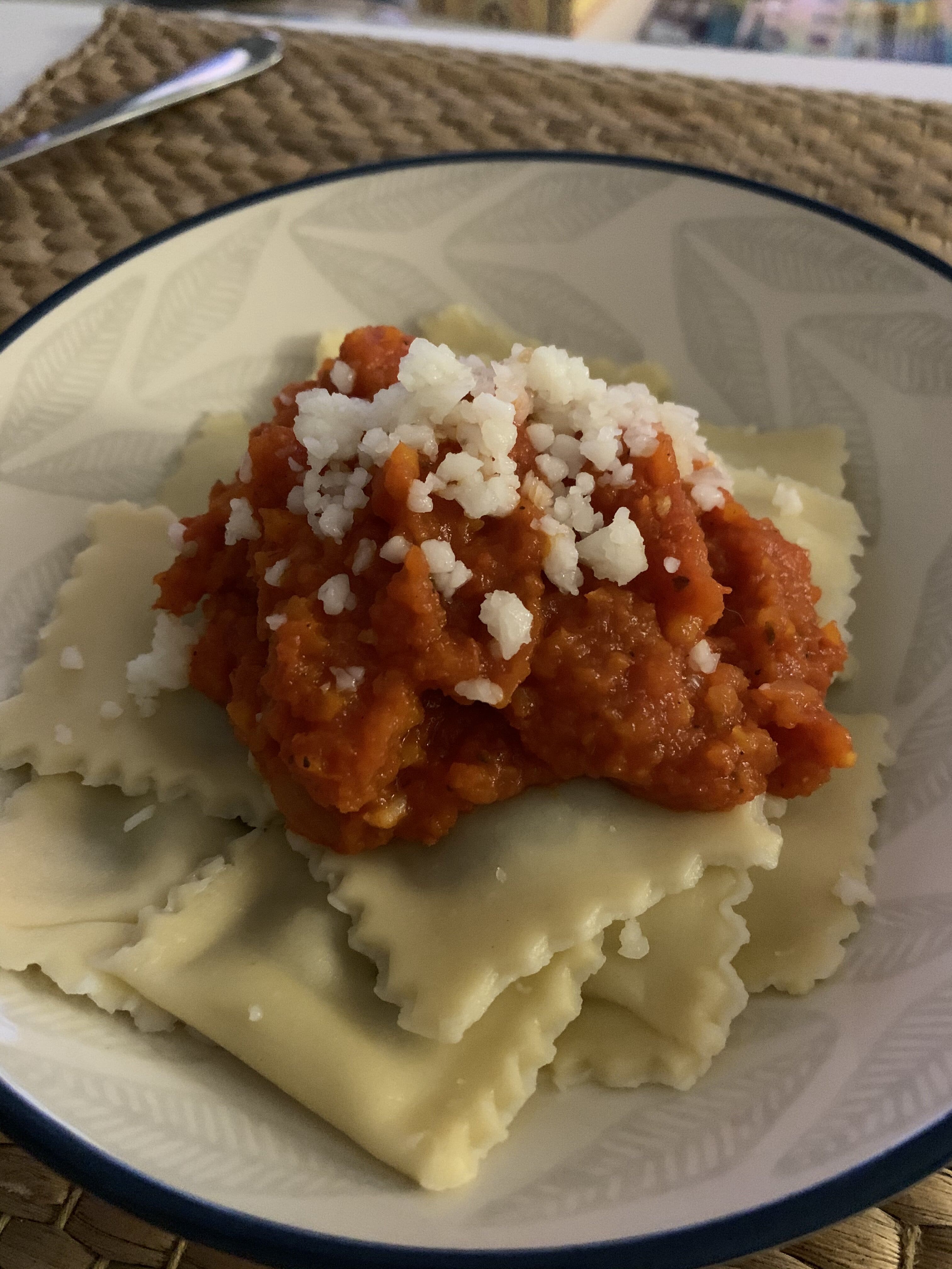 Añadimos el resto de ingredientes. Tapamos y colocamos el cestillo encima para que no salpique favoreciendo la evaporación. Programamos 30 minutos, varoma, 1